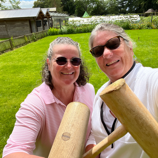 When we were roaming the gardens, we found a man sitting with Croquet equipment. We were intrigued enough to ask him what was up and he invited us to play. The grass definitely needed mowing, but that didn’t stop Martha from thumping me. You can see the blue ball is way beyond where it is supposed to be, lol.
