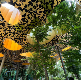 The House of Music - a two year old cultural space dedicated to music. Wiki: There is an arboretum and 94 heat insulated glass panels that allow light to reach the bottom level of the building where free concerts are held every week. The yellow-covered porch creates a special experience for visitors and the Lotus Flower inspired roof has holes to allow trees to grow tall.